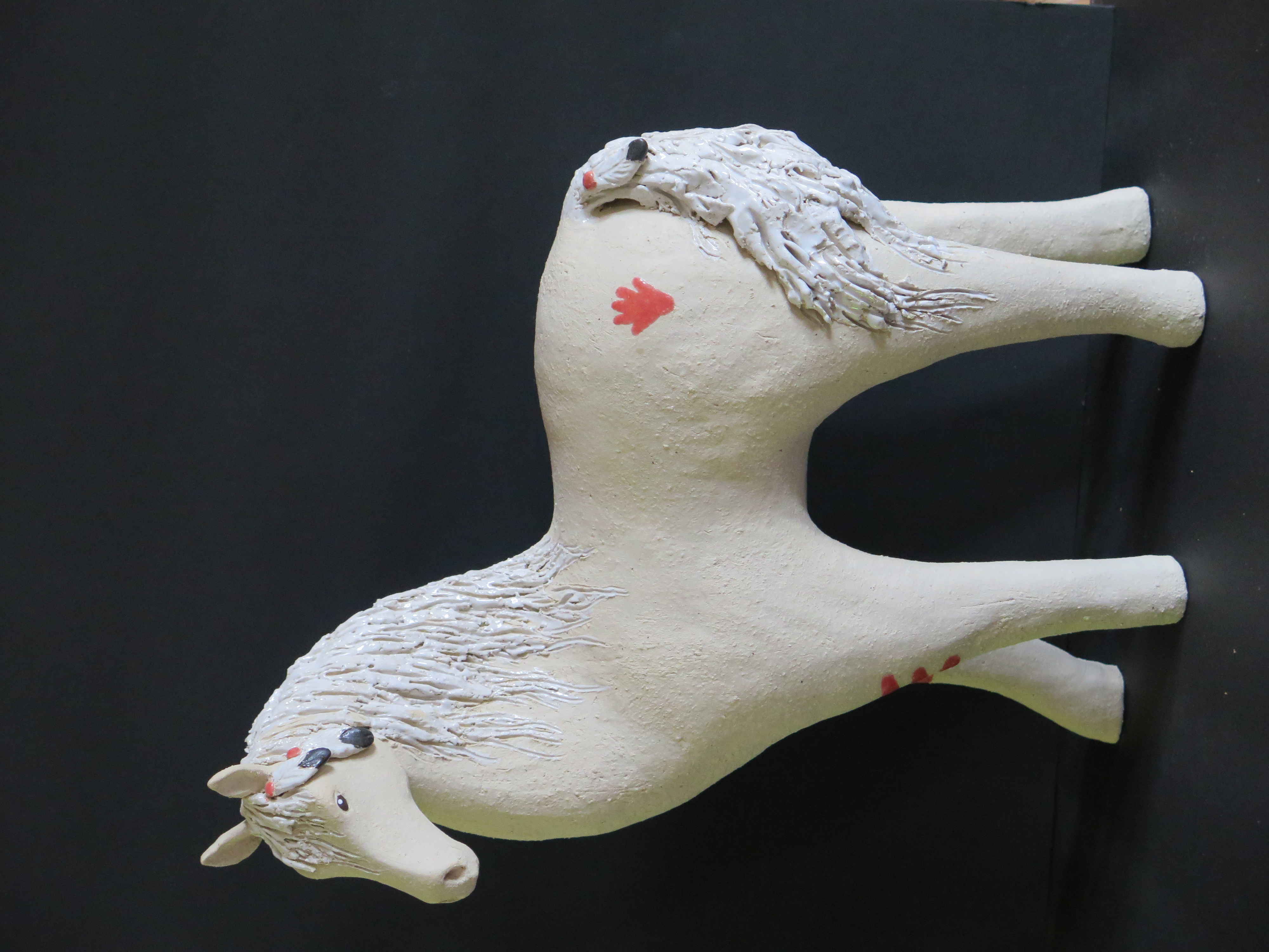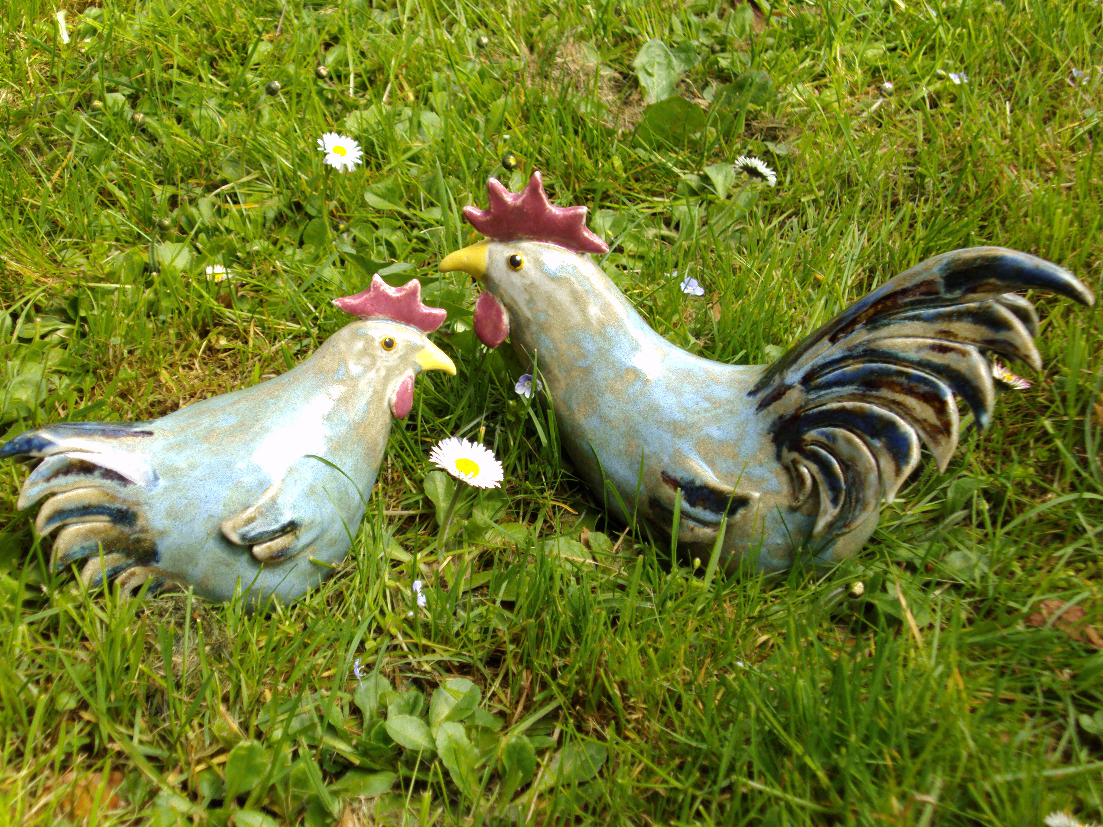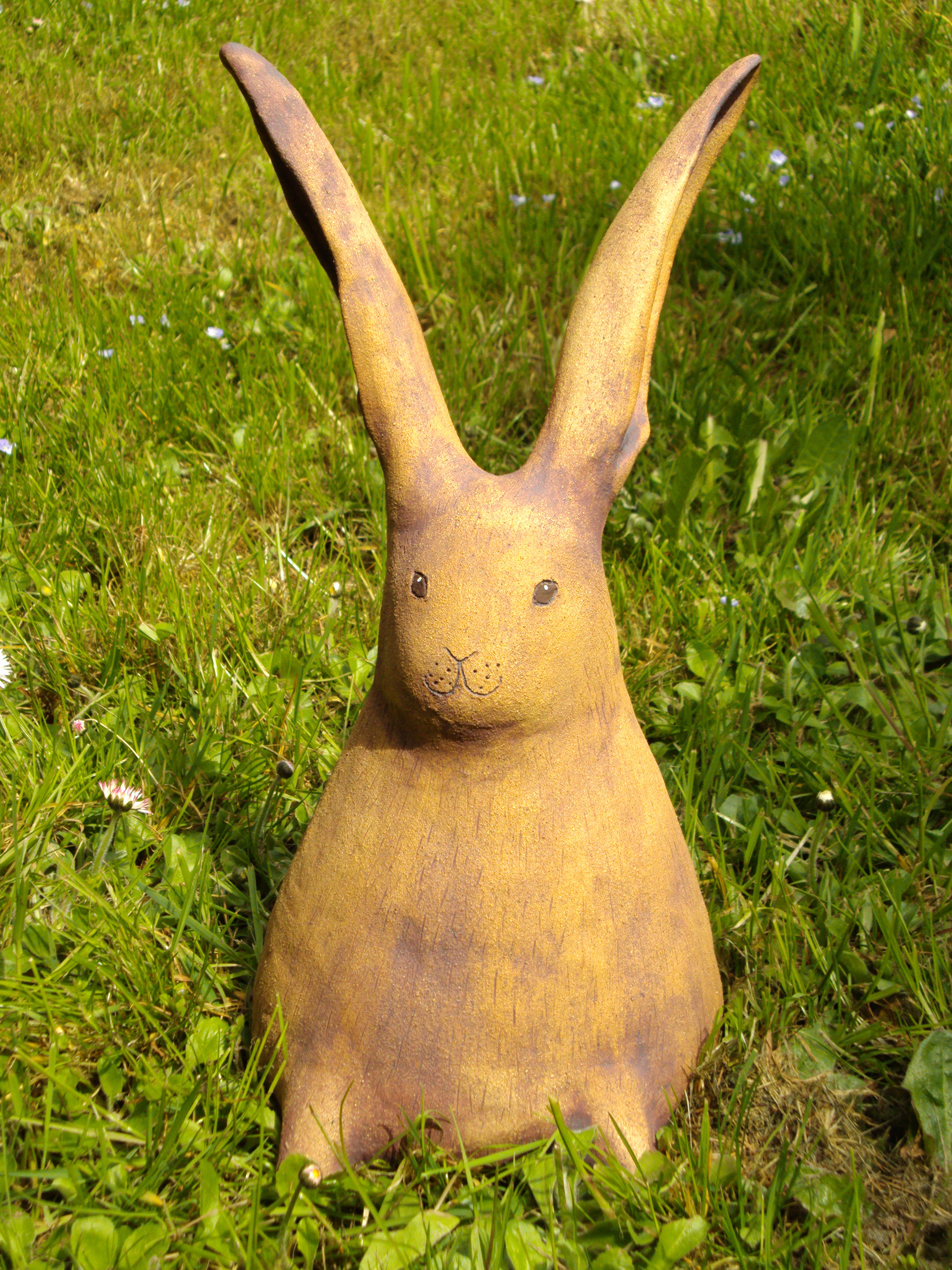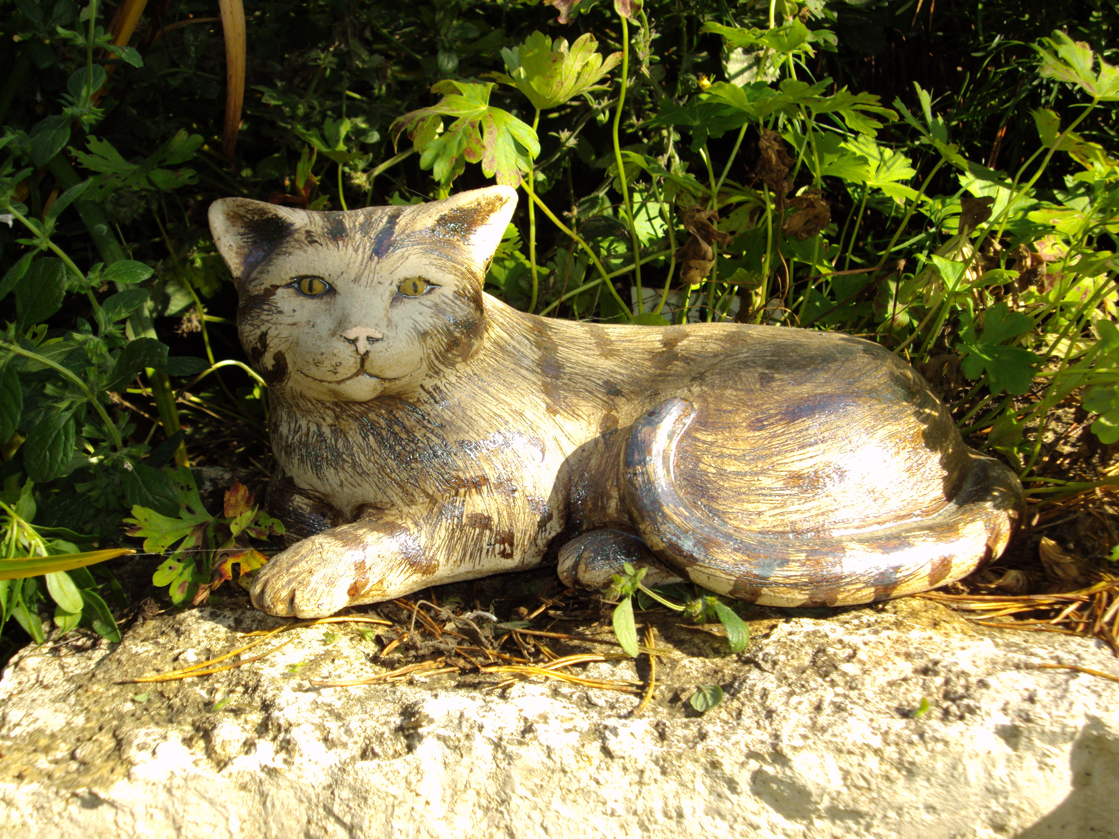 Für meine Arbeiten verwende ich ausschliesslich Steinzeugton, welchen ich im Elektro-Ofen bei 1210-1240 Grad brenne. Die Arbeiten sind dann „winterhart“. Da ich eine grosse Tierliebhaberin bin, fertige ich am liebsten Tierplastiken anhand von Fotos oder „aus meinem Kopf“ an. Dabei überlasse ich selten etwas dem Zufall. Lieber überlege ich mir vorher genau, welcher Ton und welche Glasuren sich für mein Werk am besten eignen würden.